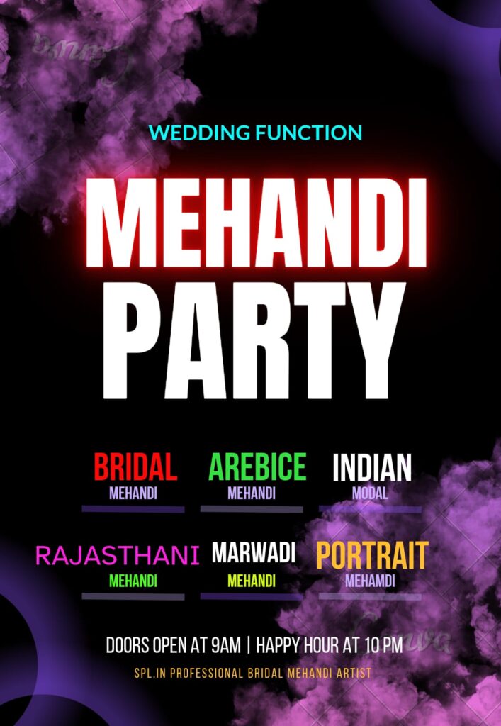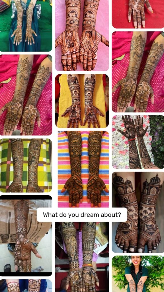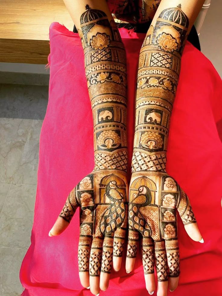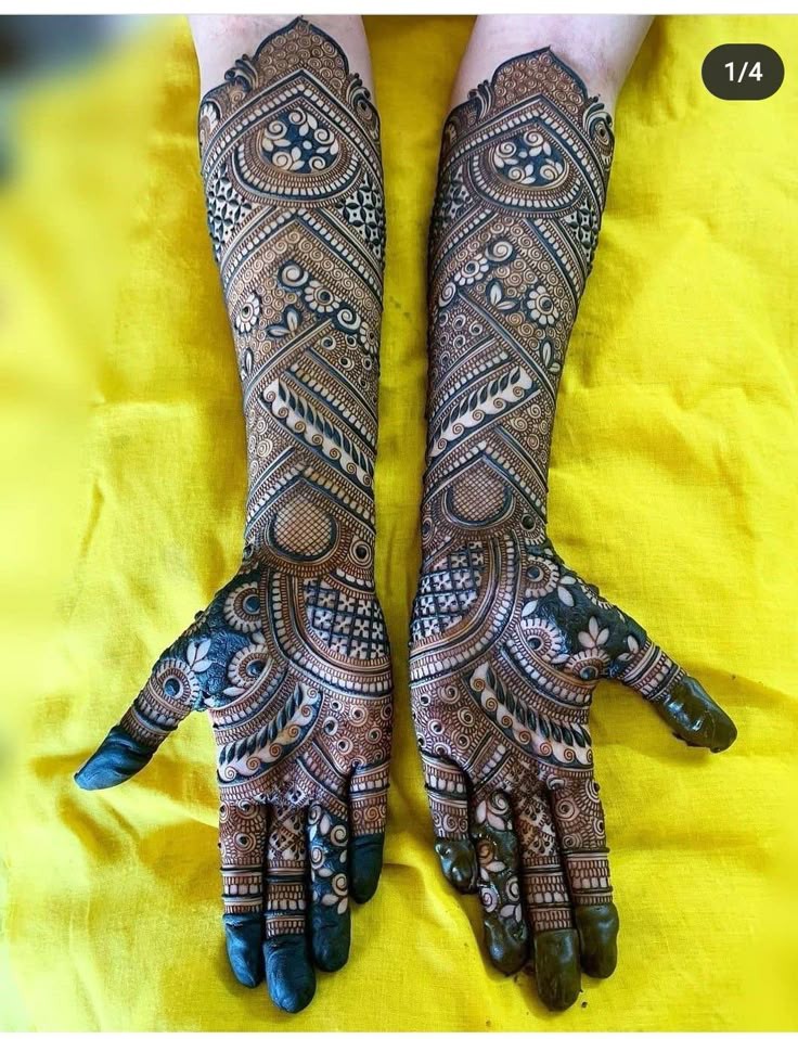 Indian Mehandi – Intricate designs featuring fine details, motifs, and cultural symbols.